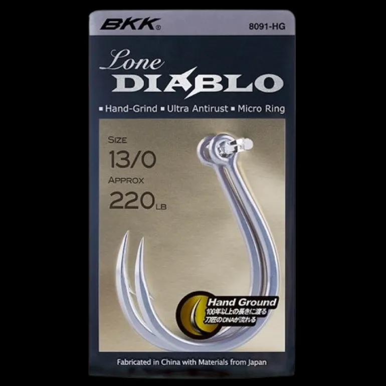 BKK’s Lone DIABLO hooks have ben developed to be used on lures like stickbaits and poppers. They embody all BKK’s best technologies and centennial experience. A Hand Ground point ensures easy penetration with bayonet like manual craftmanship, and the unique design guarantees perfect hooksets alongside longevity offered by the Ultra Anti Rust coating further ensuring optimal performance.