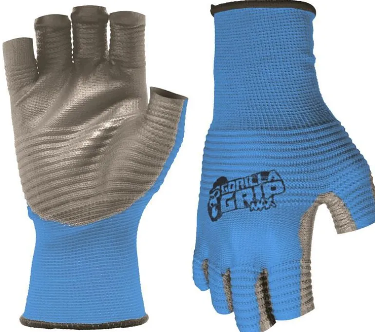 These new Gorilla Grip Max Fingerless gloves allows for maximum dexterity, comfort, and performance. Another feature of these gloves is the extended cuff that protect from the sun. The gloves have a breathable light knit shell is skintight and quick drying and feature the patented Gorilla Grip Technology that provides maximum grip in dry, wet and oily conditions.