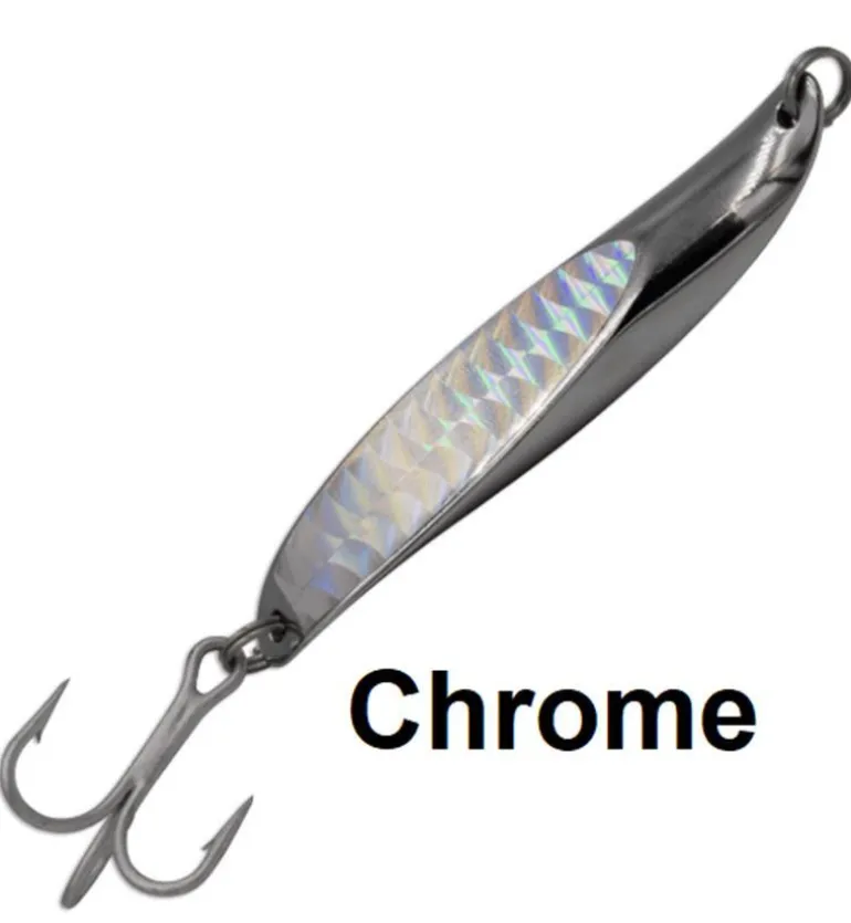 The curved ends of the famous Twisty create an enticing action like no other metal lure. From a slow wobbling retrieve to a high speed splashing retrieve this lure is truly versatile. All lures are available in Chrome and Gold finishes with a holographic sparkle to match.