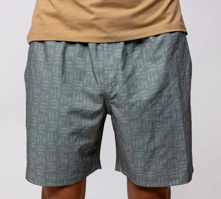 A breathable polyester–spandex blend sheds spray quickly and won’t cling, while secure pockets keep tackle, pliers and keys close at hand. Finished in a custom sublimated Big Game print, they look sharp from estuaries to offshore.