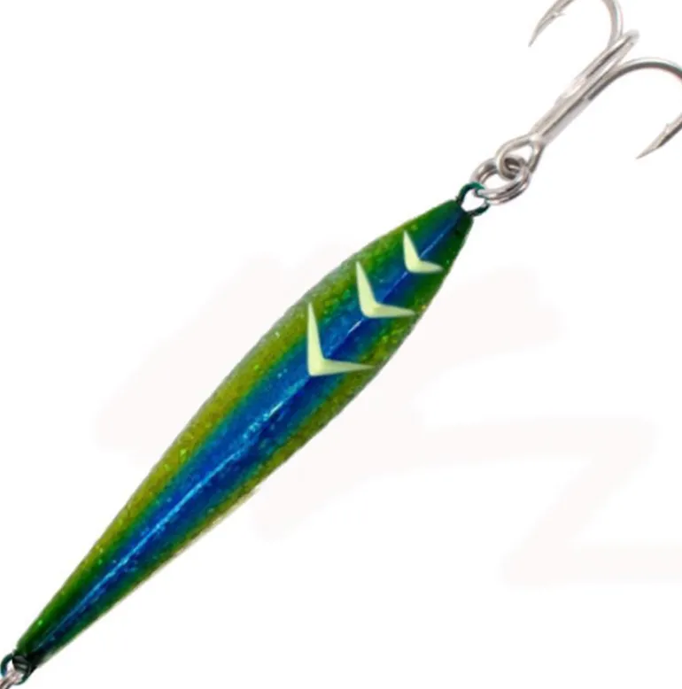 Ocean’s Legacy SlingShot surface irons are designed with a stainless-steel wire-thru design moulded in zinc alloy. Zinc alloy allows or longer shimmering flutter action on the fall compared to other materials. All SlingShot surface irons have been chrome anodized with UV resin paints along with Japanese foils to provide extra shine. The SlingShot surface irons carry 3 glow ridges on the belly to entice fish and increase hit rates.
