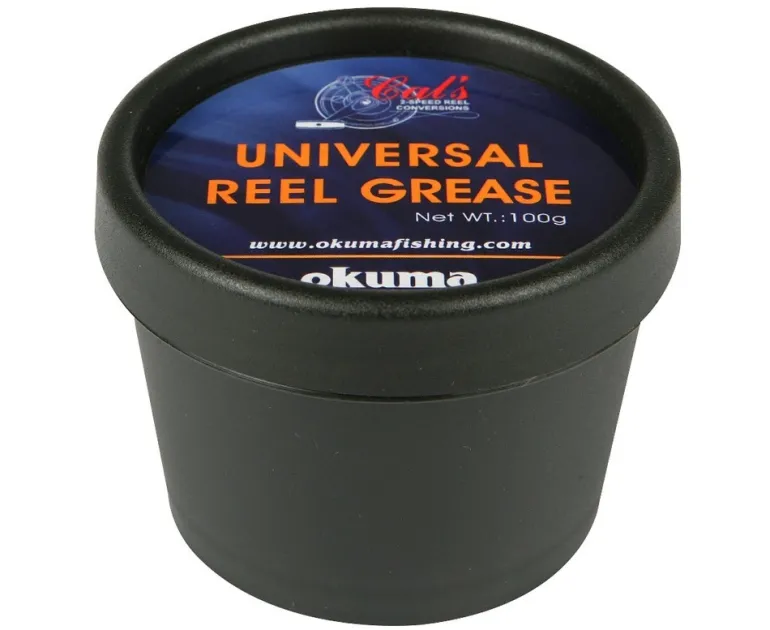 Okuma Cal’s Reel Grease 100g tub, ideal for commercial use and anglers frequently servicing multiple reels.