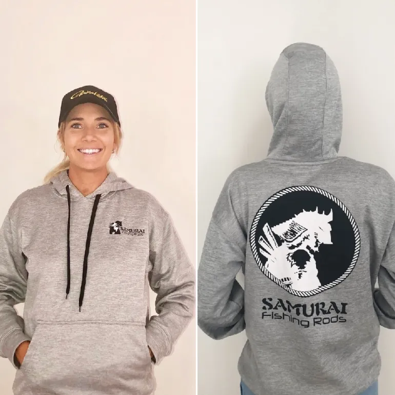 Experience the pinnacle of comfort and functionality with the Samurai Hoodie Jumper. Designed specifically for anglers, this hoodie features a unique dual-access front pocket, perfect for quick access to your essentials. Crafted for warmth, it comes in a versatile grey hue, and is adorned with a tastefully screen-printed logo.