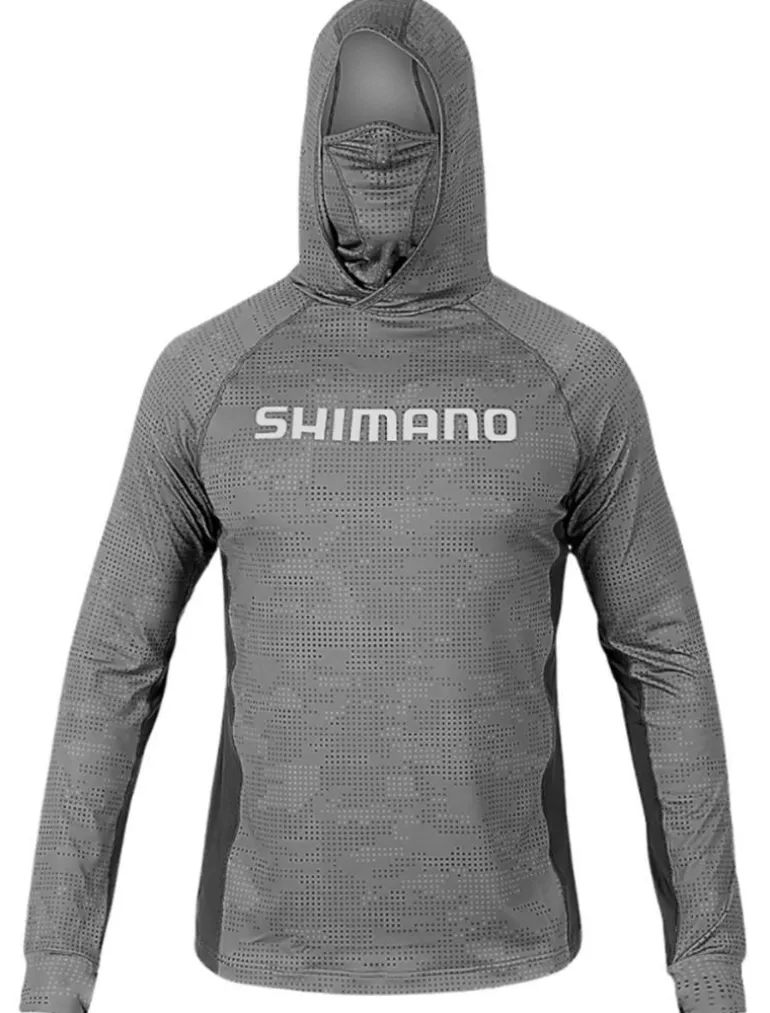 The feature packed Shimano Technical Hooded Long Sleeve Tee offers optimum face and neck protection through the hooded design and integrated Shimano Shades™ Vented Face Gaiter. It is designed to be comfortably used for long days on the water and the integrated gaiter and hood are both tapered to fit all head shapes to set itself apart from competition. With stretchy cuffs and comfortable thumb slits, Shimano Technical Hooded L/S Tees are available in S-3XL sizing and all new technical Grey Dot Camo colour.