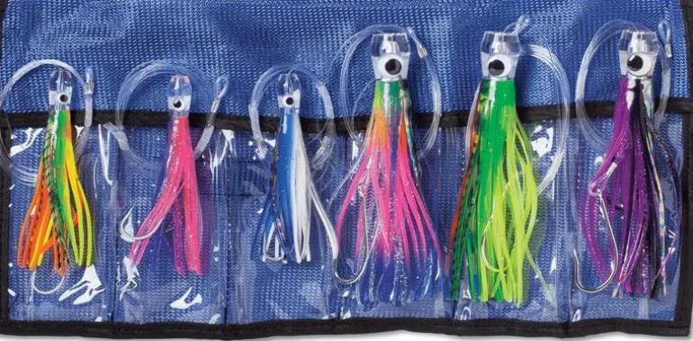 - Complete offshore trolling kit – Includes 6 rigged lures ideal for targeting sailfish, tuna, marlin, and mahi-mahi