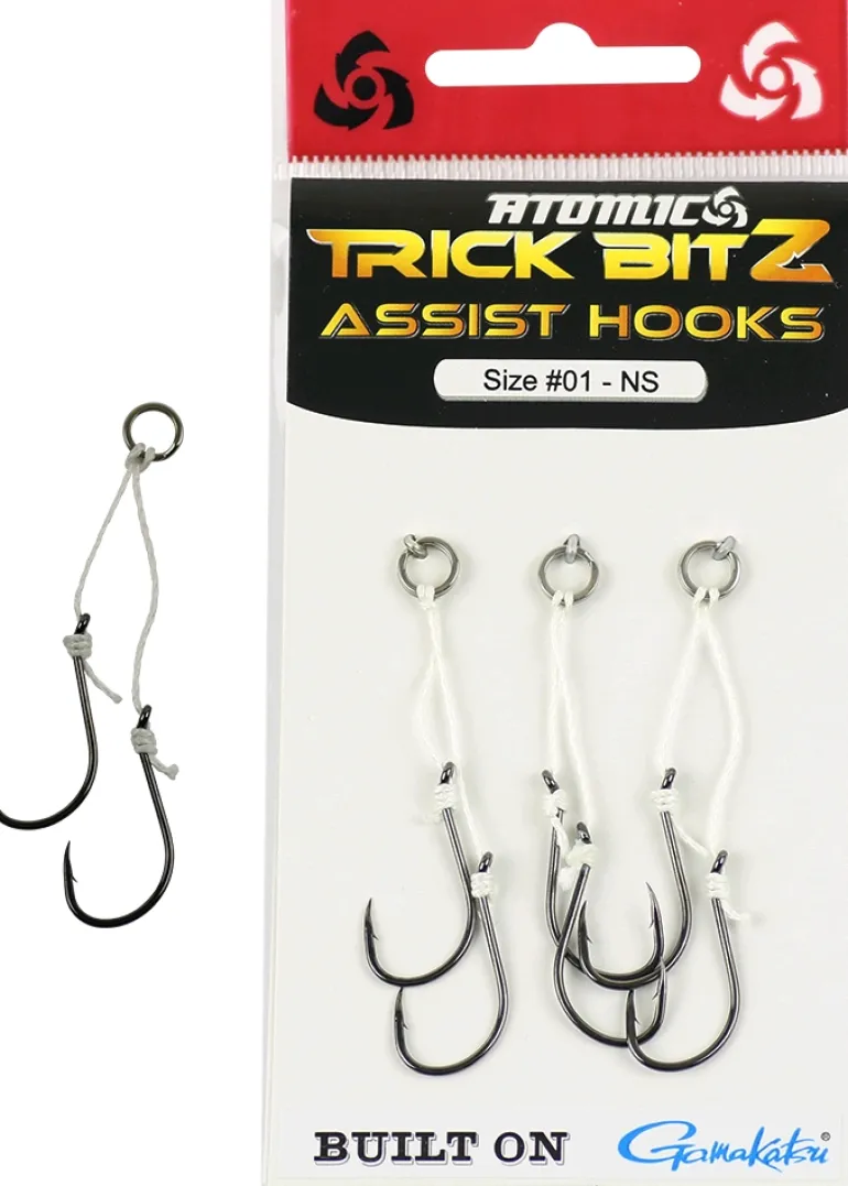 Atomic Assist hooks are perfect for anglers looking to customize their lures. They are suitable as an upgrade to any lure, particularly surface lures and feature strong nickel plated hooks and secure split rings.
