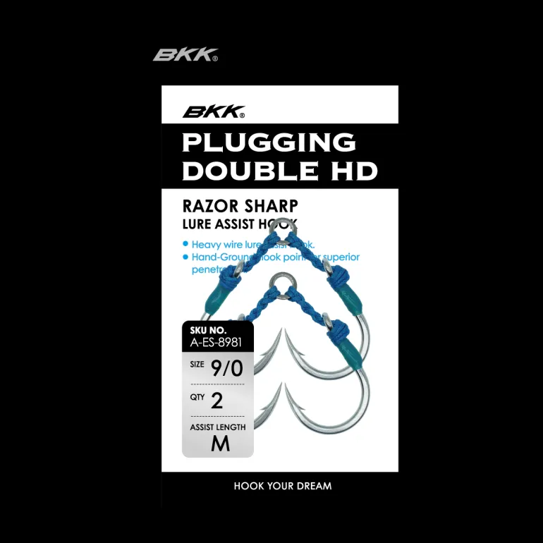 Introducing the BKK Plugging Double HD Hooks, the ultimate solution for anglers targeting the thrills of saltwater lure fishing with a need for heavy-duty performance. These 6X double assist hooks are engineered to enhance your fishing experience by offering a robust alternative to traditional treble hooks, especially in scenarios where minimizing torsional forces is crucial. Crafted with a hollow-core assist cord, these hooks guarantee exceptional freedom of movement, significantly increasing your hook-up ratio while reducing the likelihood of disengagement.