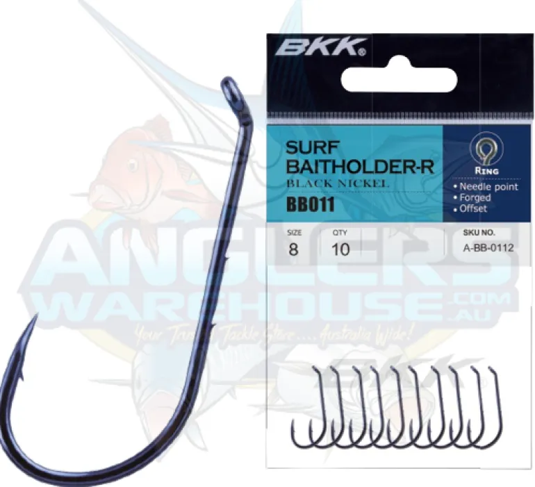 The BKK Surf Baitholder-R hook features two barbs on the back of the shank that firmly hold all sorts of baits.