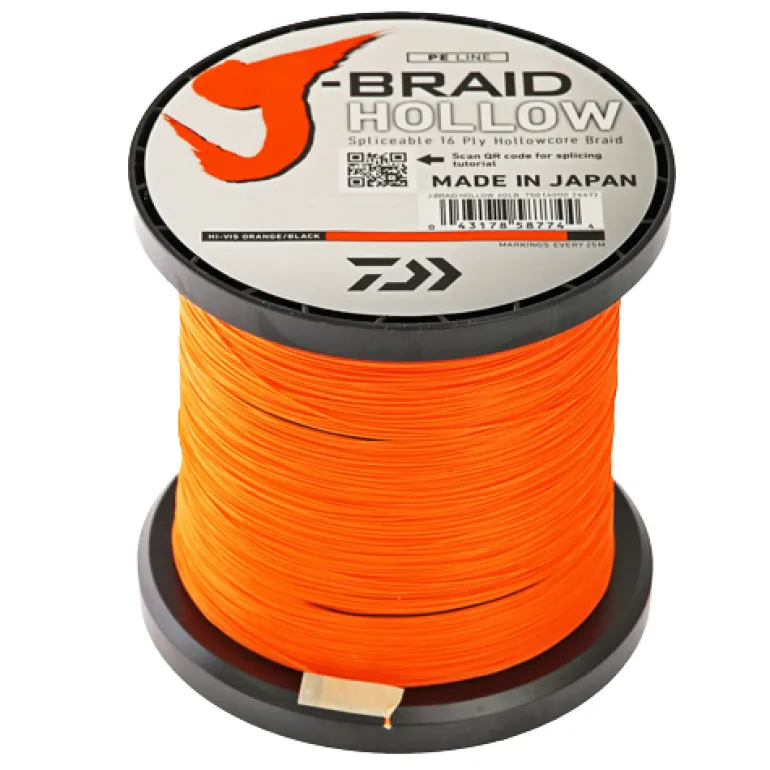 DAIWA J BRAID HOLLOW BRAID LINE 750m ORANGE – 60lb