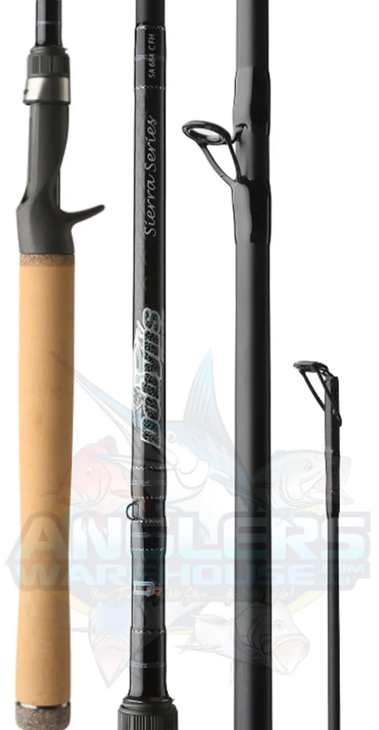 Elevate your casting precision with the DOBYNS Sierra Baitcast Rod, tailored for the angler who demands excellence without compromise. The Sierra Series boasts high modulus graphite blanks that deliver a blend of power and sensitivity unmatched in its class. Outfitted with Fuji Alconite guides and Fuji reel seats, each cast is smooth, and every fight is controlled. The Sierra Series rods are built on the spine, ensuring balance and uniform action, all wrapped up with robust Kevlar and finished with the finest Portugal AA-cork for a grip that melds comfort and durability. The Sierra Ultra Finesse models are a specialized continuation of the series, designed for ultra-light bass fishing with the finesse to handle delicate presentations for bass, panfish, crappie, and trout. Available in 7′ and 7’4″ lengths, these one-piece rods feature a solid carbon tip and split handle designs for unparalleled action.