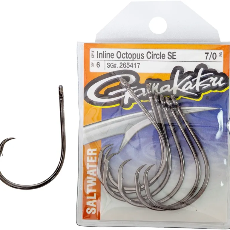 Gamakatsu Circle Inline Point Octopus Hook is the same design as the Octopus Circle, but without the offset. Designed expressly to conform with some billfish tournament regulations and some fisheries that require non-offset circle hooks.