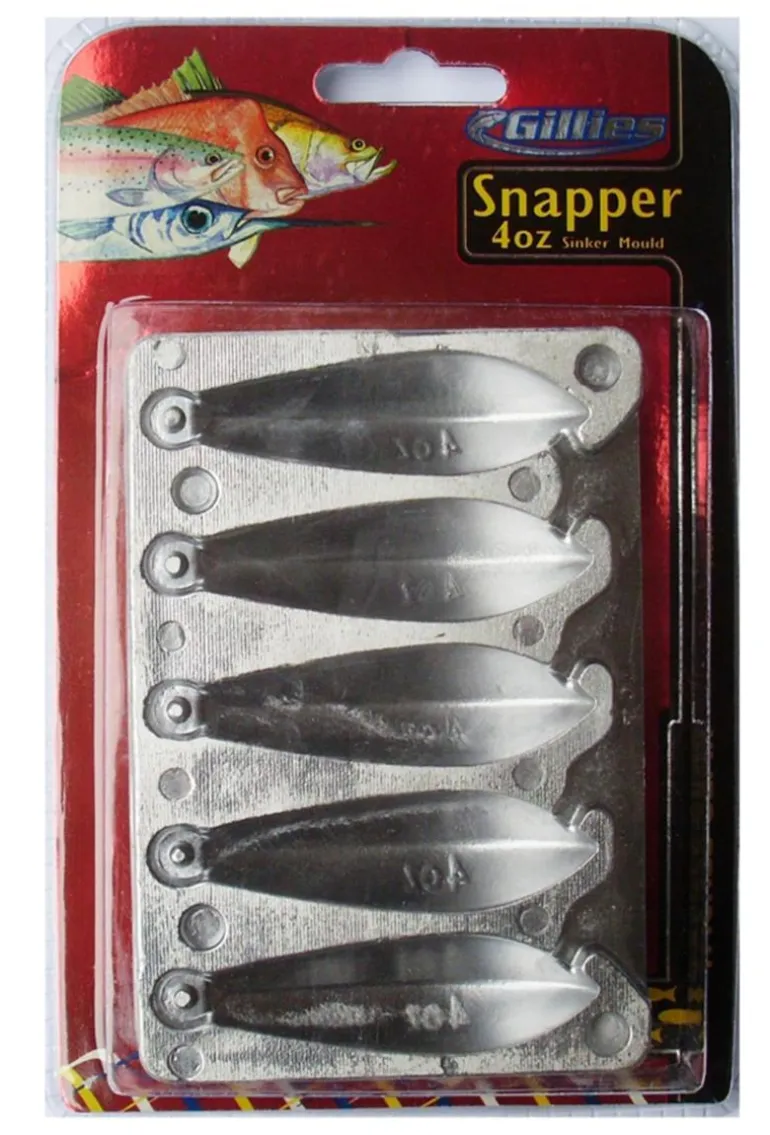 Gillies range of sinker moulds represent excellent value for money by offering a multi sized array of sinkers per mould. A great way to save money and to recycle lead. TIPS : Melt lead in a heavy cast iron pot in a well ventilated area and make sure that The pouring ladle or spoon is dry. Pre-heat the sinker mould allows molten lead to flow.