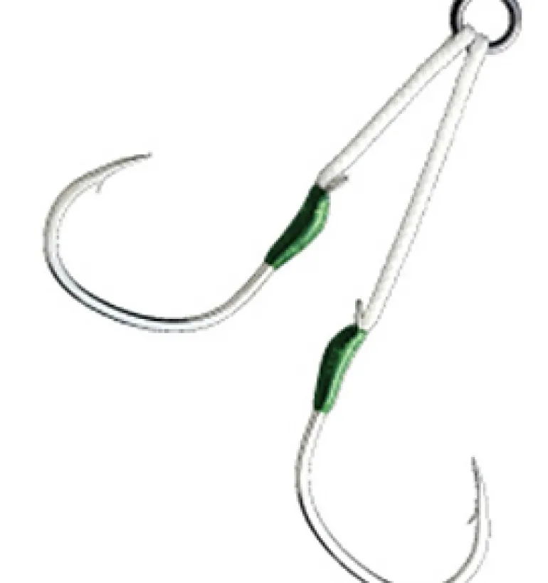 - Tandem outwards pointing hooks, ideal for slow pitch jigging