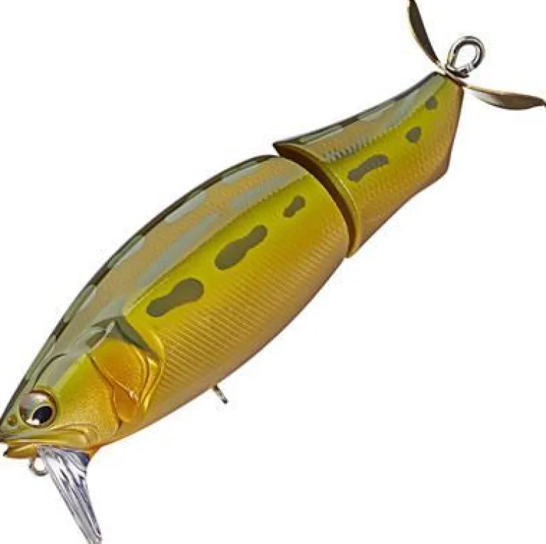 The Megabass i-LOUD is a jointed topwater prop bait which showcases the Rudder Action Balancer System (PAT.P) of the i-JACK for devastating action and sound. Housed in a new concept wakebait/propbait designed by ITO ENGINEERING, the RAB System emits a resounding ‘knock’ as it throws its weight from side to side, giving off a strong sonic presence as it helps power the outsized action of Megabass i-LOUD ’s jointed body. Rear prop adds another layer of lively sound, and leaves a bubble trace along the retrieve line. With a large profile, and even larger action and sound, i-LOUD represents an aggressive approach to activate the feeding modes of dormant monsters, and trigger explosive bites.