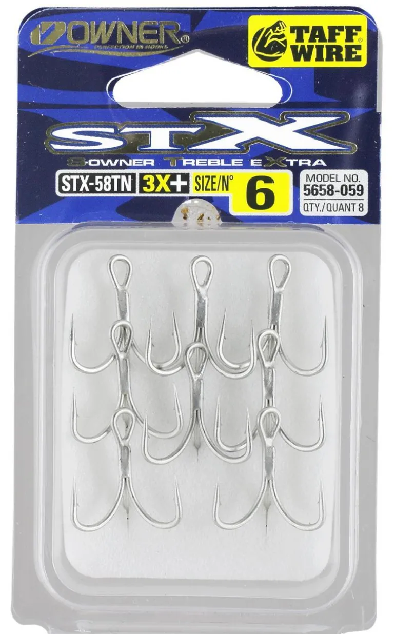 The new STX-58 treble features a new type of wire that is 20% stronger than the high carbon steel currently used in all Owner Hooks. This new ZO-WIRE™ helps create hooks that are smaller in diameter, yet stronger & harder than ever before. The single most important characteristic for hook penetration is the wire diameter. ZO-WIRE™ hooks are stronger per wire diameter than any hook on the market. The hardness of ZO-WIRE™ makes the point almost indestructible. Standard length straight slightly curved in super needle points, &corrosion resistant vacuum tin finish.