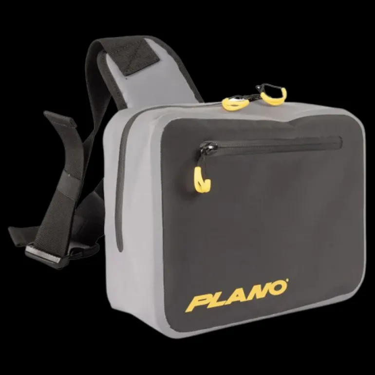 Upgrade your fishing gear storage with the Plano Z Series Waterproof 3600 Sling Bag. This premium bag comes with two 3600 stowaway boxes to neatly organize your tackle. Crafted from durable 500D PVC material, the bag features welded seams and sealed zippers, offering exceptional water resistance. The nylon zippers are specially designed to resist corrosion, ensuring longevity. An added waterproof front storage pocket provides extra space for your essentials. For your comfort, the bag includes an adjustable padded shoulder strap, complete with a handy tool holder.