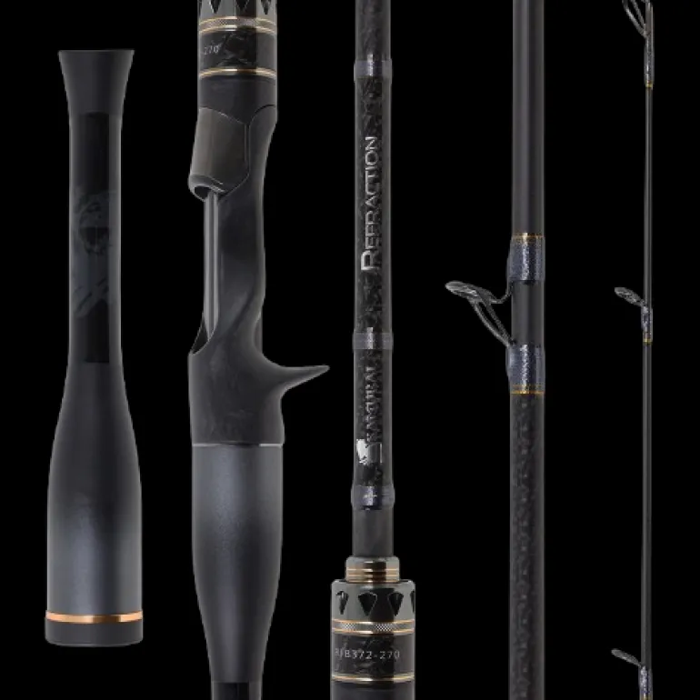 The Samurai 24 Refraction Baitcast Rod is engineered for precision and performance, mirroring the industry-leading Reaction series while delivering unmatched control and balance. Designed with Samurai’s innovative triple-layer carbon blank and cutting-edge six-axis over-wrap technology, this rod minimizes lineal twist, offering exceptional pulling power and superior casting accuracy. Built to be incredibly light yet durable, it features Fuji TCH Carbon/Titanium reel seats (on all but the two heaviest swimbait models) and Fuji Titanium SiC guides for smooth line flow and reduced weight. With the C-SEU grip control, anglers experience unparalleled sensitivity and comfort, making the Samurai 24 Refraction Baitcast Rod ideal for a range of casting techniques. Whether you’re chasing freshwater bass or saltwater predators, this rod ensures you’re ready for any challenge.