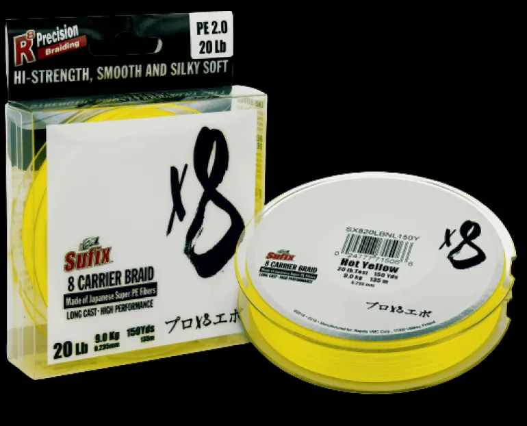 Introducing Sufix x8, the epitome of a round, user-friendly, and luxuriously smooth Japanese-style braided line. Crafted with an 8-carrier construction of ultra-thin HMPE fibers, this line boasts remarkable strength, exceptional thinness, and outstanding resistance to abrasion, knots, and shocks.