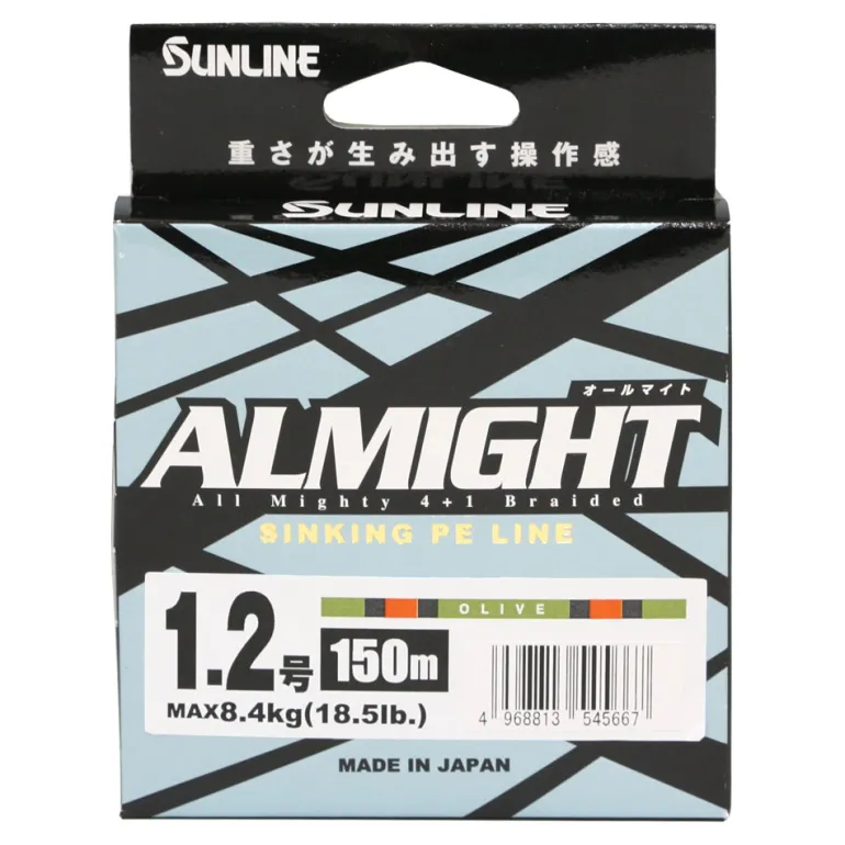Introducing the Sunline Almight PE Braid Line 150m in Olive: the ultimate fishing line that offers unparalleled performance and control. Engineered with a unique blend of four ULT-PE materials and high-specific-gravity fiber at its core, this line boasts a specific gravity of 1.48, ensuring your line stays submerged for better lure manipulation.