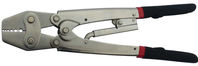 Extra tough stainless steel power crimping pliers. Extra wide jaws with six sleeve positions, can crimp leader sizes from 50lb to 500lb.