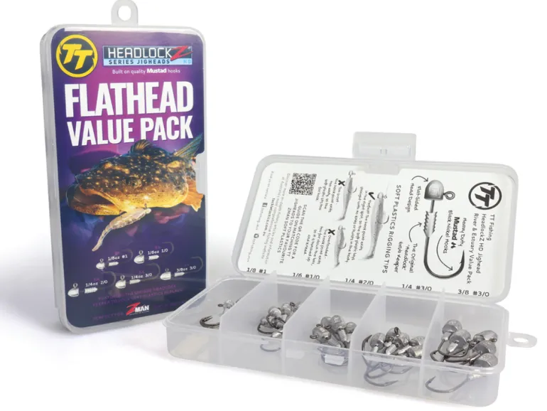 - Includes HeadlockZ HD jigheads designed for flathead fishing.