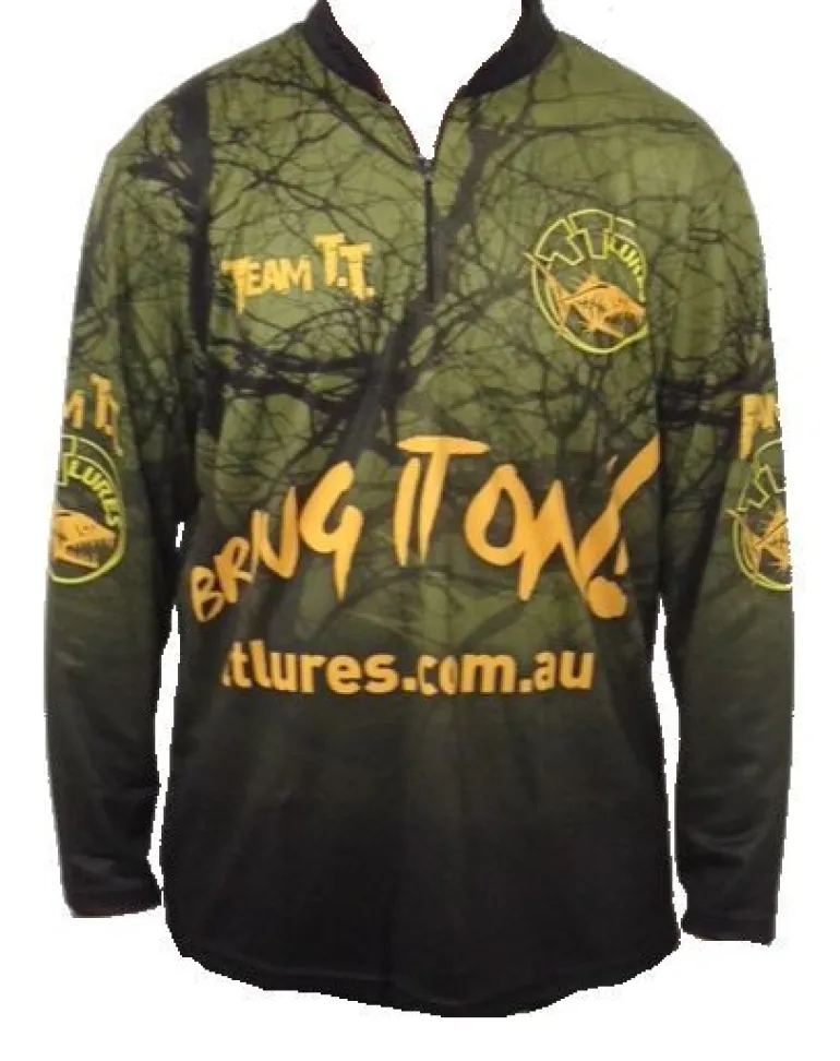 The TT Lures Tournament Long Sleeve Fishing Shirt is designed for anglers who want both performance and style on the water. Featuring a bold “Bring It On!” design, this lightweight, breathable shirt provides all-day comfort while keeping you protected from the sun with UPF-rated fabric. The moisture-wicking material helps you stay dry and comfortable, making it perfect for long fishing sessions. Built tough for any fishing adventure, this shirt is ideal for competitive anglers who want to represent Team TT in style.