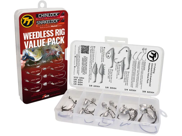 The TT Lures Weedless Rig Value Pack is the perfect starter kit for anglers looking to explore weedless rigging or those already experienced in fishing soft plastics in snag-filled areas. This versatile pack includes a range of ChinlockZ SWS and SnakelockZ jigheads, allowing you to customize head weights and hook sizes to suit various fishing conditions, from topwater presentations to reaching deeper strike zones. Ideal for fishing in weedy or structure-filled waters, this pack ensures that your soft plastics stay snag-free, enhancing your chances of landing species like flathead, bream, and bass.
