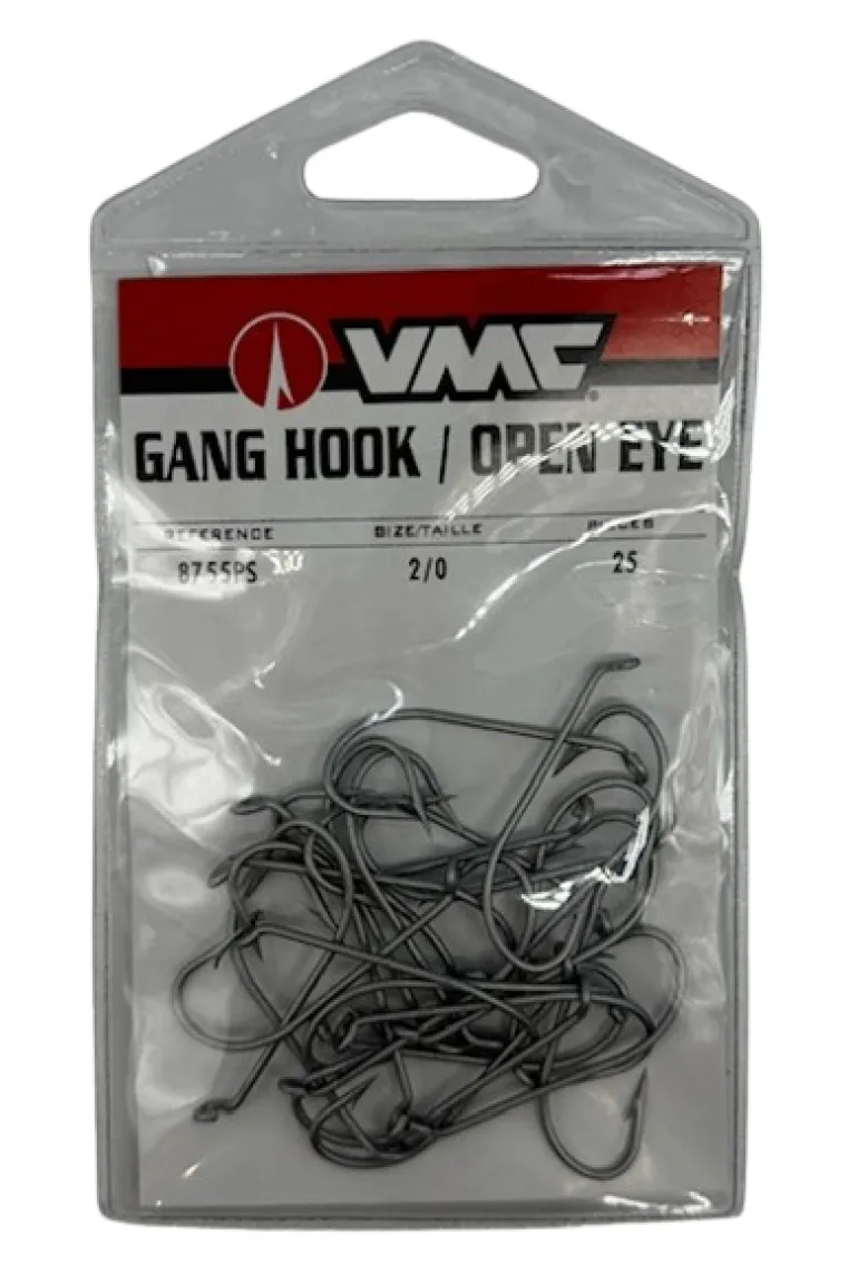 VMC 8755 Open Eye Gang Hooks are the perfect hook for rigging strip or whole fish baits. With a needle sharp point and a permasteel finish VMC 8755 gang hooks will pin and hold even the most stubborn of toothy fish.